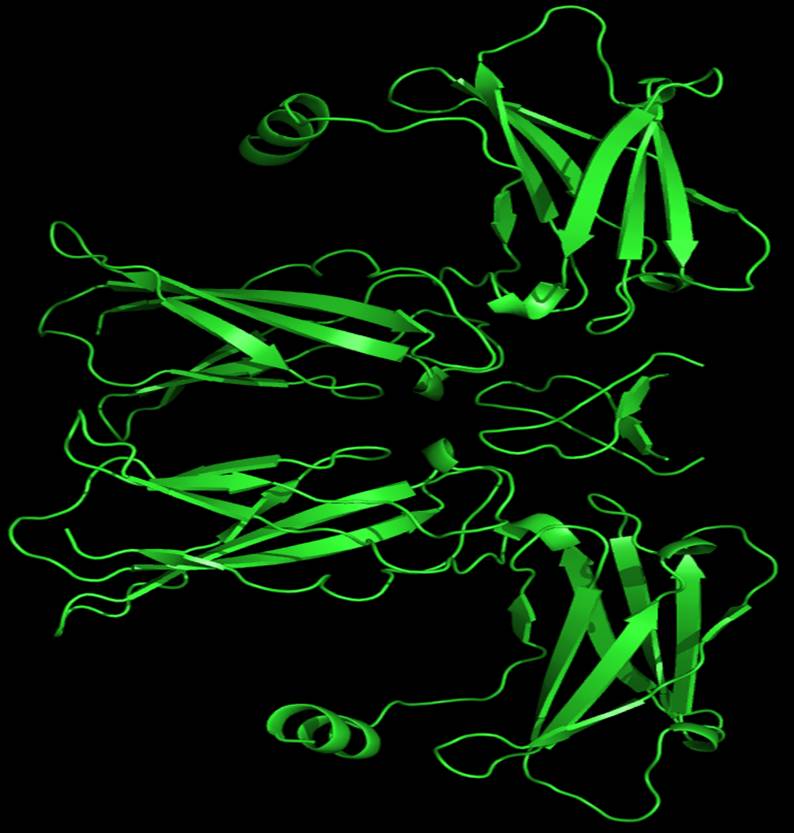 Example of PyMol-made 3D ANIMATION of 48% W/W glycoprotein with modelled carbohydrate (sugar) residues: