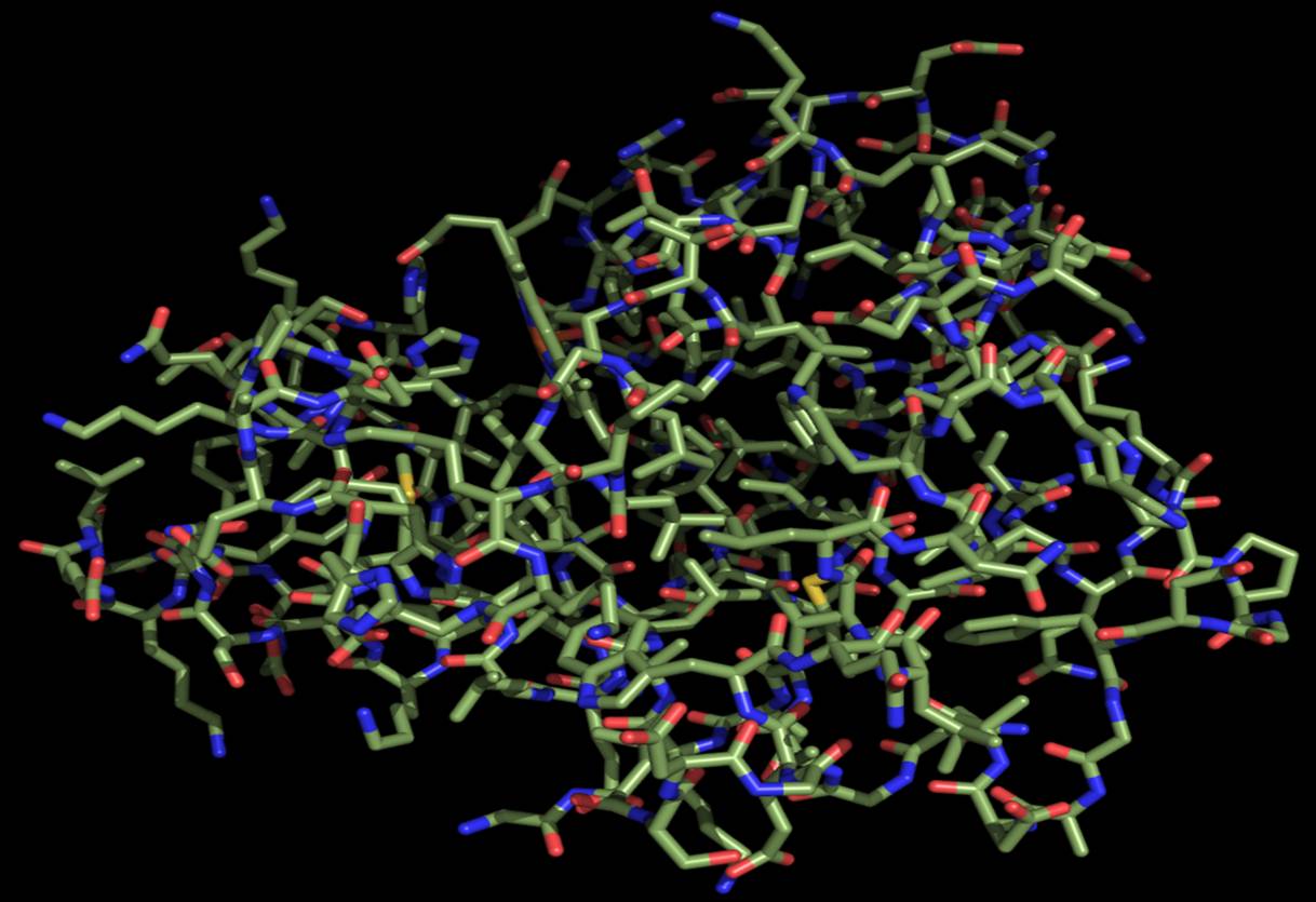 Example of PyMol-made 3D ANIMATION of 48% W/W glycoprotein with modelled carbohydrate (sugar) residues: