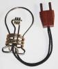 Jousi. Idea: Yritä irrottaa rengas jousesta ja sitten takaisin. Jousi on hauska "silmänkääntötemppu". Pituus on n. 11 cm. Materiaalit ovat koivu, teräsjousi ja messinkirengas. Ratkaisuohje löytyy piirrettynä pakkauksesta. Vaikeusaste B.