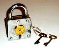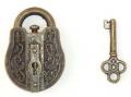 Vanha lukko. Idea: Yritä avata lukko ja lukitse käytön jälkeen. Tämän sarjan lukot on sarjoitettu niin, ettei minkään toisen lukon avain sovi toiseen lukkoon. Aivot menevät tämän kanssa lukkoon. Korkeus on 6,5 cm. Materiaali on patinoitua terästä. Ratkaisuohjeen saa pyydettäessä sähköpostilla veloituksetta. Vaikeusaste B.